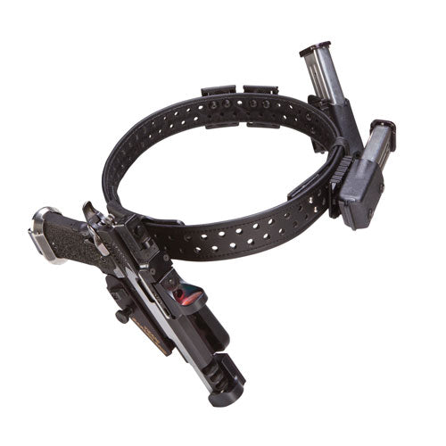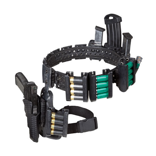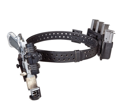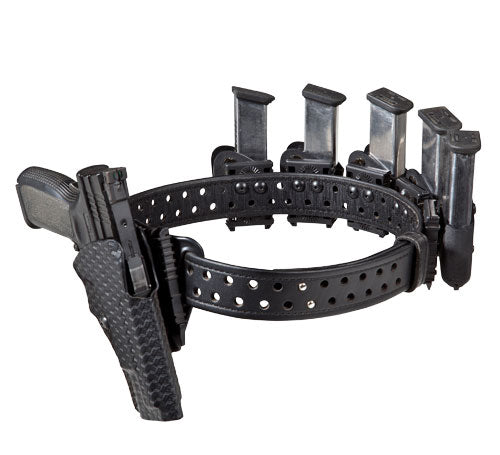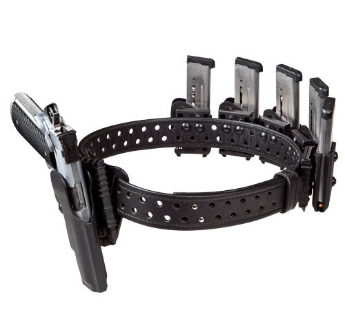 Here is a Single Stack ELS rig that can easily be changed out to Production Class when changing classes. In this setup, use the 771 pouch in the first reload location as seen in the single stack rig, and then the model 773 closed front pouches with the rest of the magazines for extra security.
